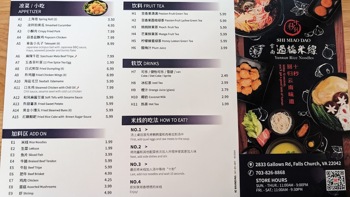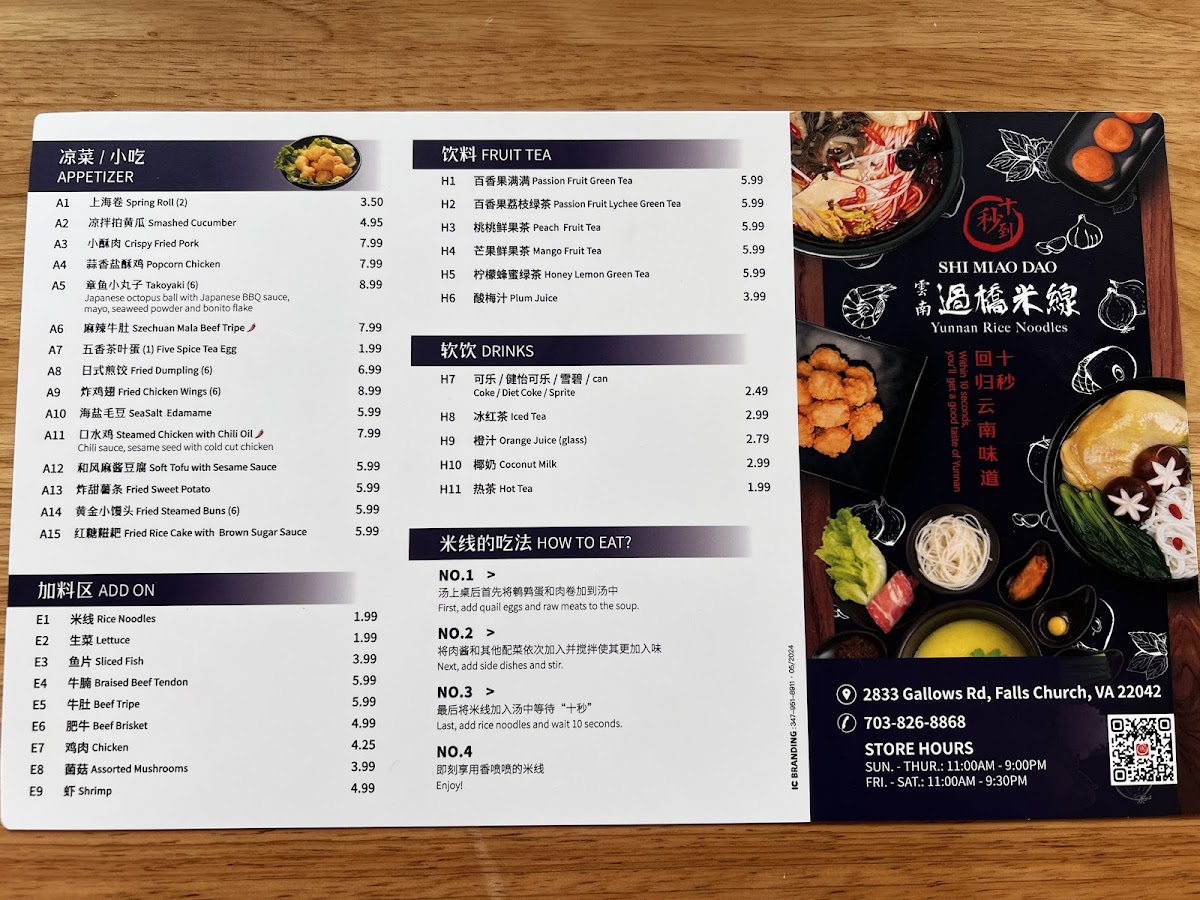 If you’re craving something warm, comforting, and full of character, the Shimiaodao Yunnan Rice Noodle (十秒到云南过桥米线) Menu at 2833 Gallows Rd in Falls Church is a great place to start exploring. The dishes here lean into rich broths, springy noodles, and toppings that feel both familiar and exciting. You’ll find options that range from light and soothing to bold and spicy, and it’s surprisingly fun to mix and match ingredients to build your own perfect bowl.